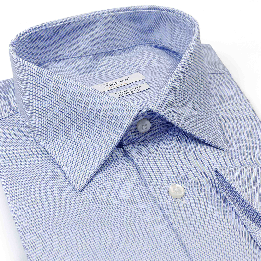 Camicia armaturato trattino celeste, 100% cotone facile stiro. Collo Parigi semifrancese elegante e formale, polsino stondato. Adatta a tutte le stagioni.