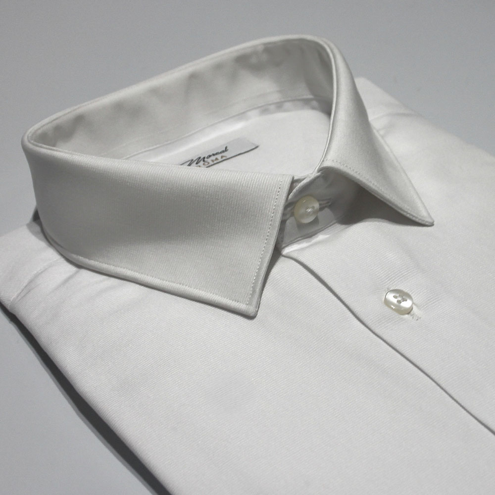 Camicia Twill raso bianco | collo Smoking2 e polso gemello