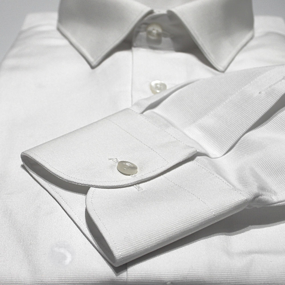 Camicia bianca in tessuto Cotè, 100% cotone. Collo Zurigo elegante e formale, polsino stondato con sdoppio per gemello. Adatta ad autunno e inverno.