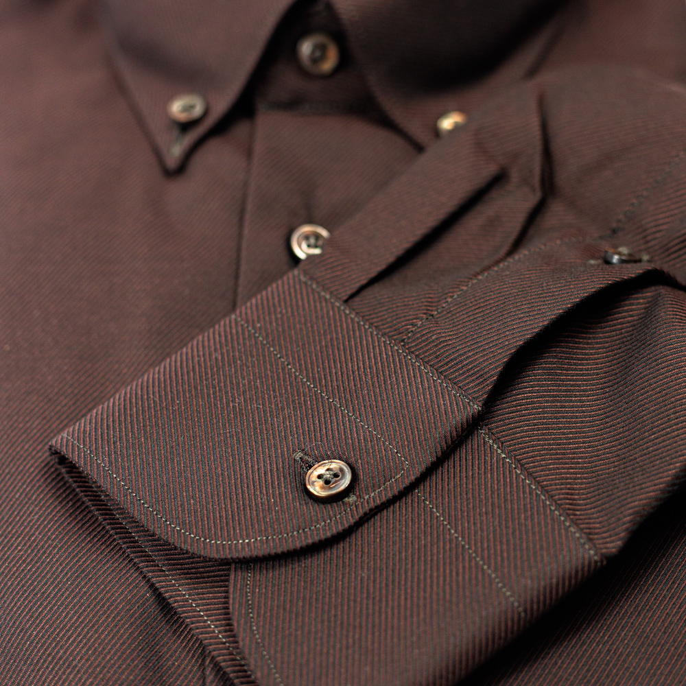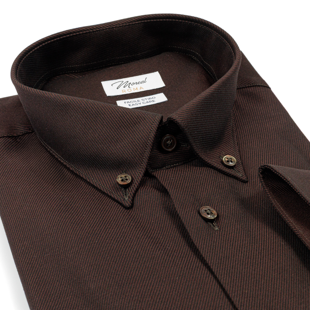 Camicia in twill marrone, 100% cotone facile stiro. Collo Parigi semifrancese classico e polsino stondato. Adatta a autunno, inverno e primavera.