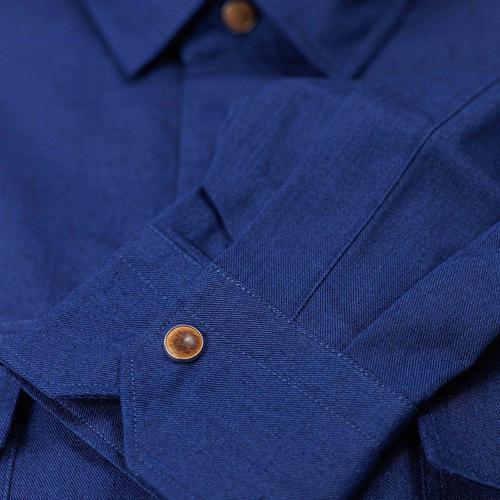 Il collo Zurigo morbido e sportivo, insieme ai polsini smussati leggeri, assicura vestibilità comoda e stile casual-chic. I bottoni a scatto e i due taschini frontali aggiungono praticità e carattere, rendendo la camicia perfetta per look quotidiani ma curati. Il colore Blue, elegante e versatile, completa il design con discrezione, valorizzando ogni outfit.