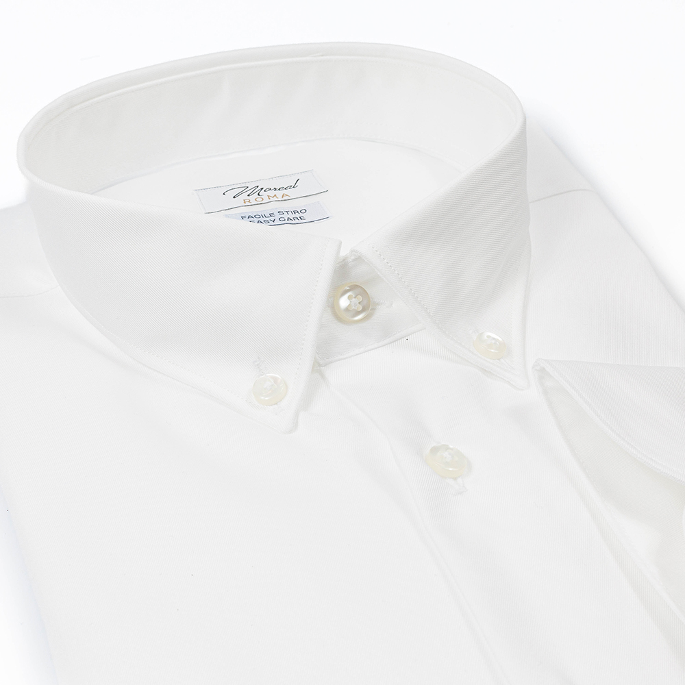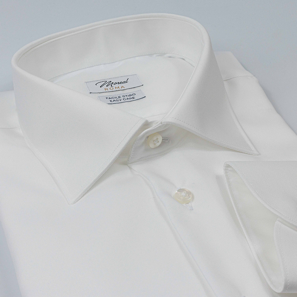 Camicia Twill bianca, 100% cotone facile stiro. Disponibile con collo Parigi semifrancese elegante e formale oppure con collo Sir button down sportivo e informale. Polsino classico stondato. Adatta a tutte le stagioni.