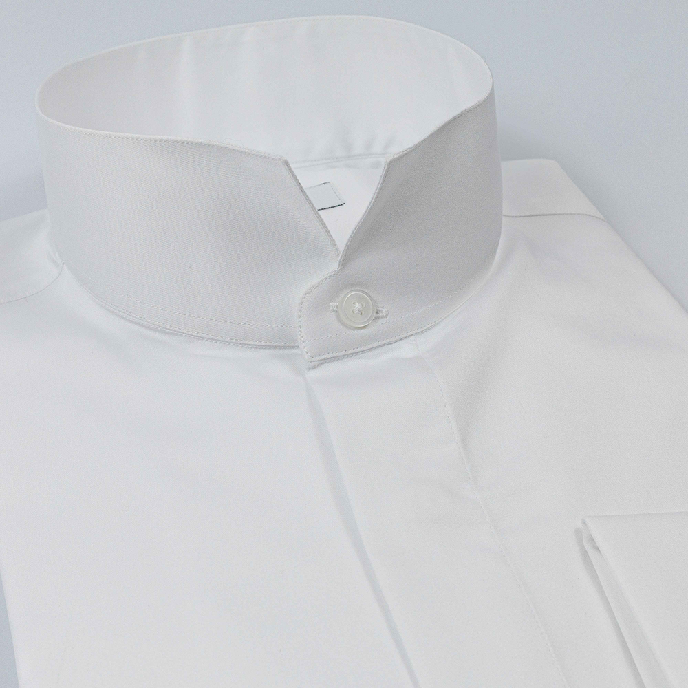 Il collo Smith, molto simile al diplomatico ma leggermente più alto e con punte più corte, offre un aspetto elegante e ricercato, pensato per valorizzare al meglio papillon e accessori da cerimonia. I polsini doppi da gemello aggiungono un ulteriore tocco di raffinatezza, mentre i bottoni a scomparsa con cannello coperto assicurano un design lineare e pulito, ideale per outfit impeccabili.